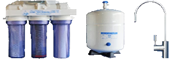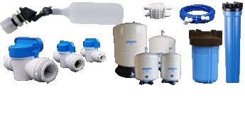 ASOV Automatic Shut Off Valve Push in connections. These are pressure sensitive devices. A piston moves in relation to water pressure. When there is a lot of back pressure on the pure water side of your system the piston moves to close off the water supply to the system. When you start using water from the container, water pressure is relieved and the piston moves to allow tap water to enter the system. You can use this valve with a float valve in a storage tank and have totally automatic tank filling and shut down system. If you have a home RO with a pressure tank, you do not need a float for the system to be automatic. |