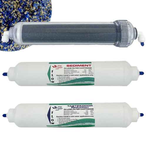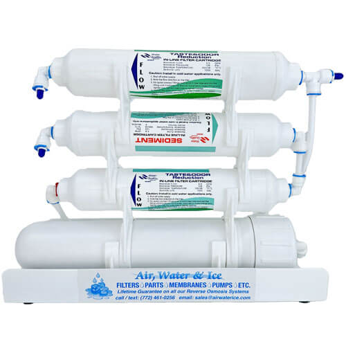 Filter Packs (carbon & sediment filters) should be replaced every 6-12 months or 750 pure water gallons (375 gallons for inline filters), whichever comes first. Easily add a $20 inline pressure gauge to your system to identify line pressure drops & know exactly when to change your pre-filters.